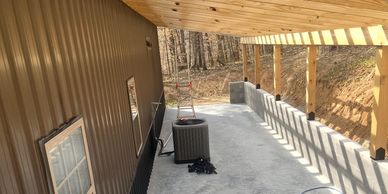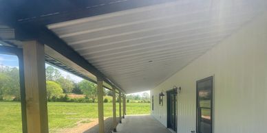 Nice side shed addition we did on a Barndominium house. Cypress posts made this side-shed look more like a beautiful patio, than an equipment storage area!