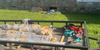 In this photo we are leveling the floors on a 2 story home that was failing structurally and collapsing. We were able to install some much needed support beams on top of concrete pillars, that we mixed and poured on site. We also installed block pillars and added fasteners and framing in areas where floor joists were failing. We were able to save this customers house, at a fraction of the cost that they were quoted by another company.