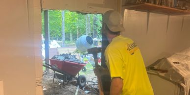 In this photo we are making a door opening in a block wall, but we handle all kinds of demolition projects, large and small.
