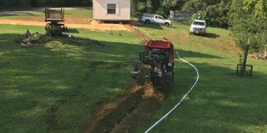 Water Line Installation and Maintenance, in this photo we are installing PEX water line from a well-pump house to a mobile home.